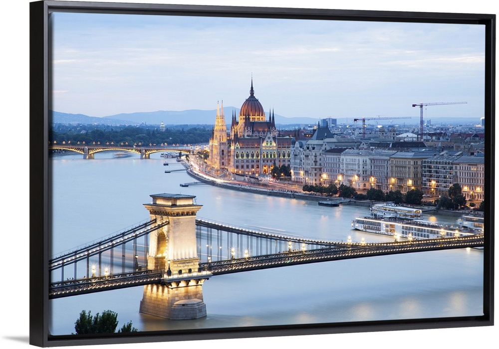 <p>Budapest in the evening, with Parliament and Chain Bridge over the River Danube, UNESCO, Budapest, Hungary</p>