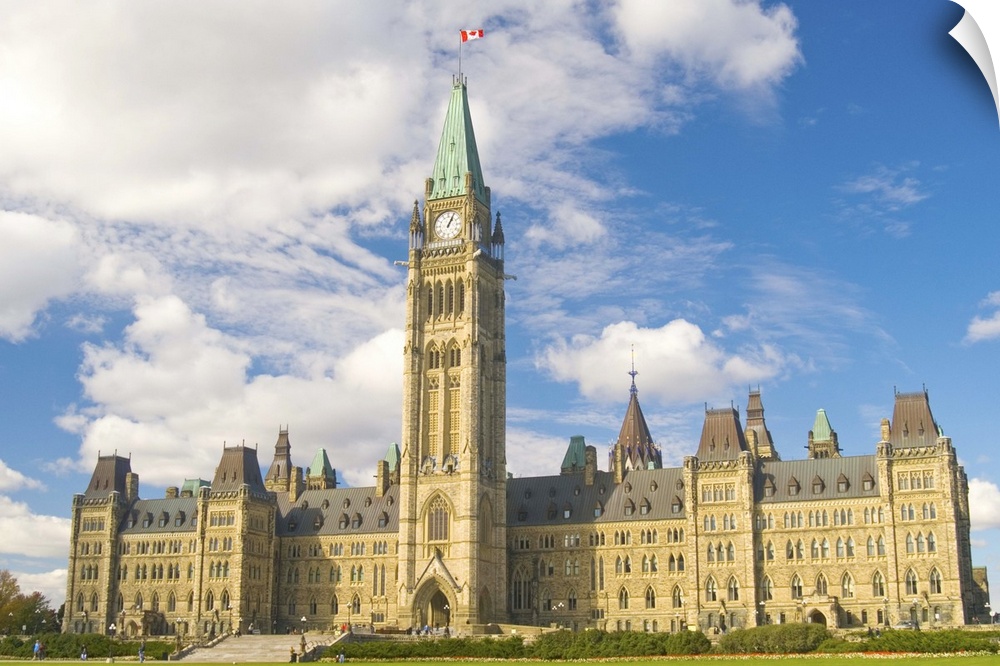 <p>Centre block of Parliament, on Parliament Hill.</p>