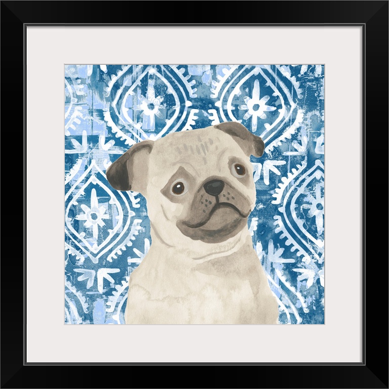 Art Blue Wall Art Decorative Art Painting Patterns June Erica Vess Wildlife Dog Pug