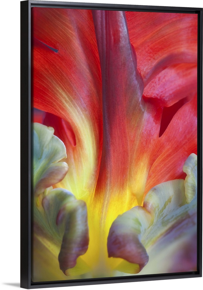 <p>Close up of the colorful petals of a Parrot Tulip flower.</p>