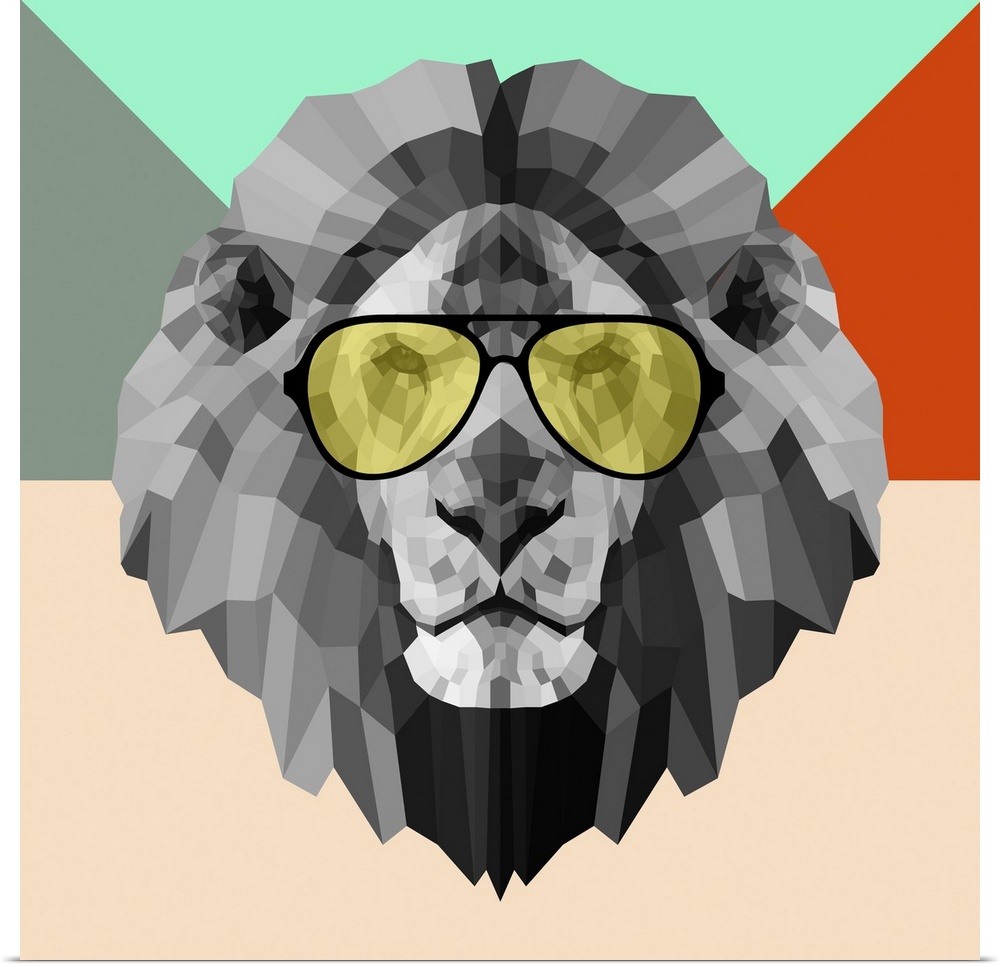 <p>Lion head wearing sunglasses made up of a polygon mesh.</p>