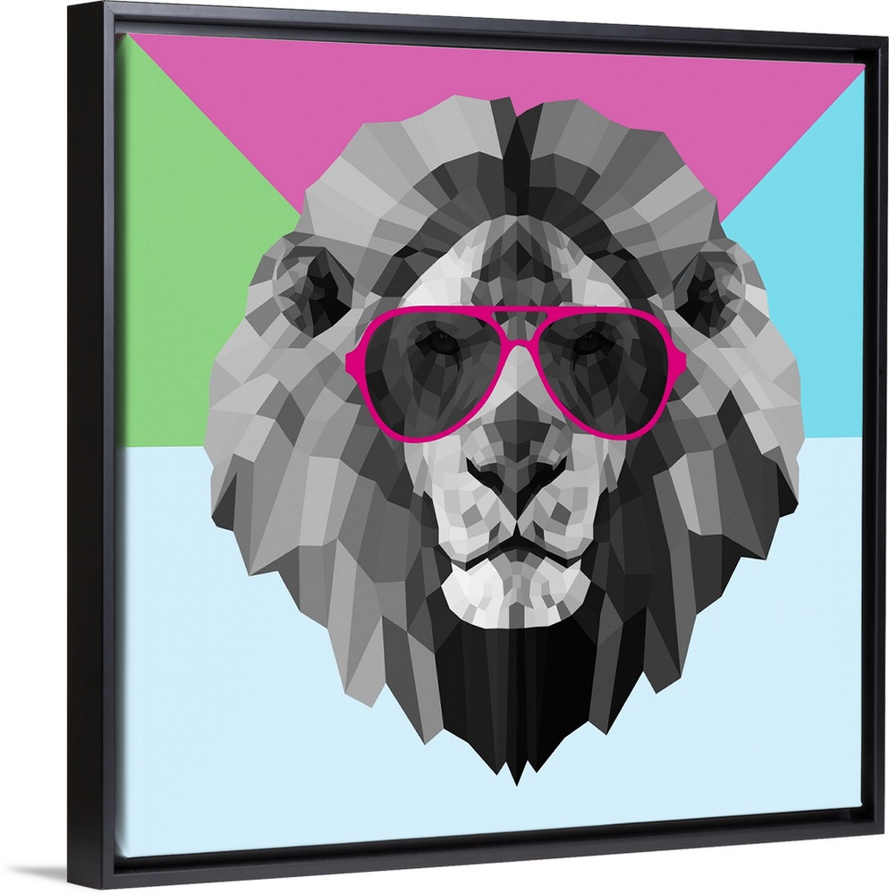 <p>Lion head wearing sunglasses made up of a polygon mesh.</p>
