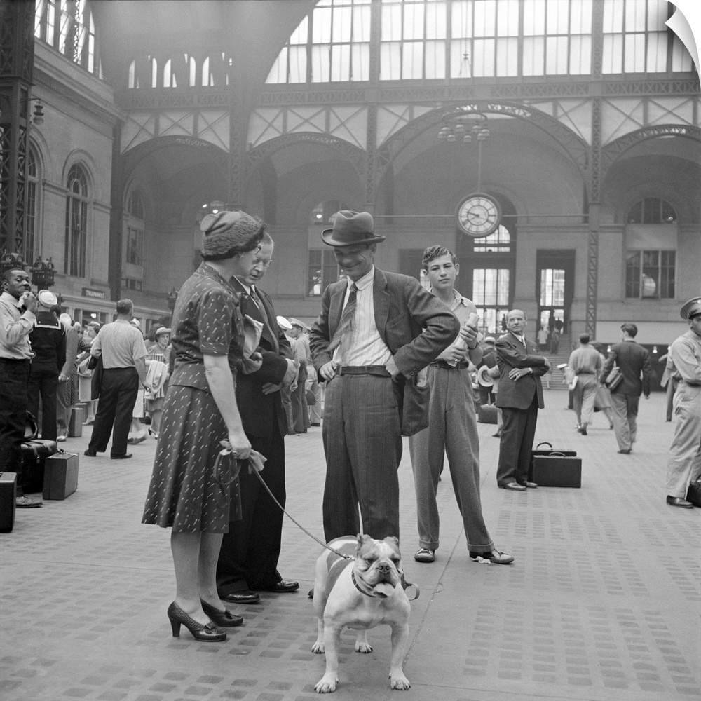 <p>Passengers waiting for their train at Penn Station in New York City. Photograph by Marjory Collins, 1942.</p>