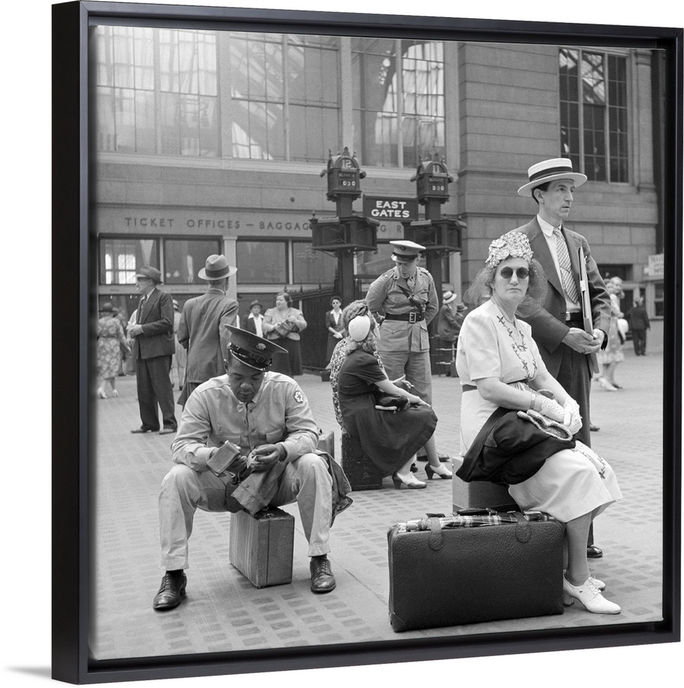 <p>Passengers waiting for their train at Penn Station in New York City. Photograph by Marjory Collins, 1942.</p>
