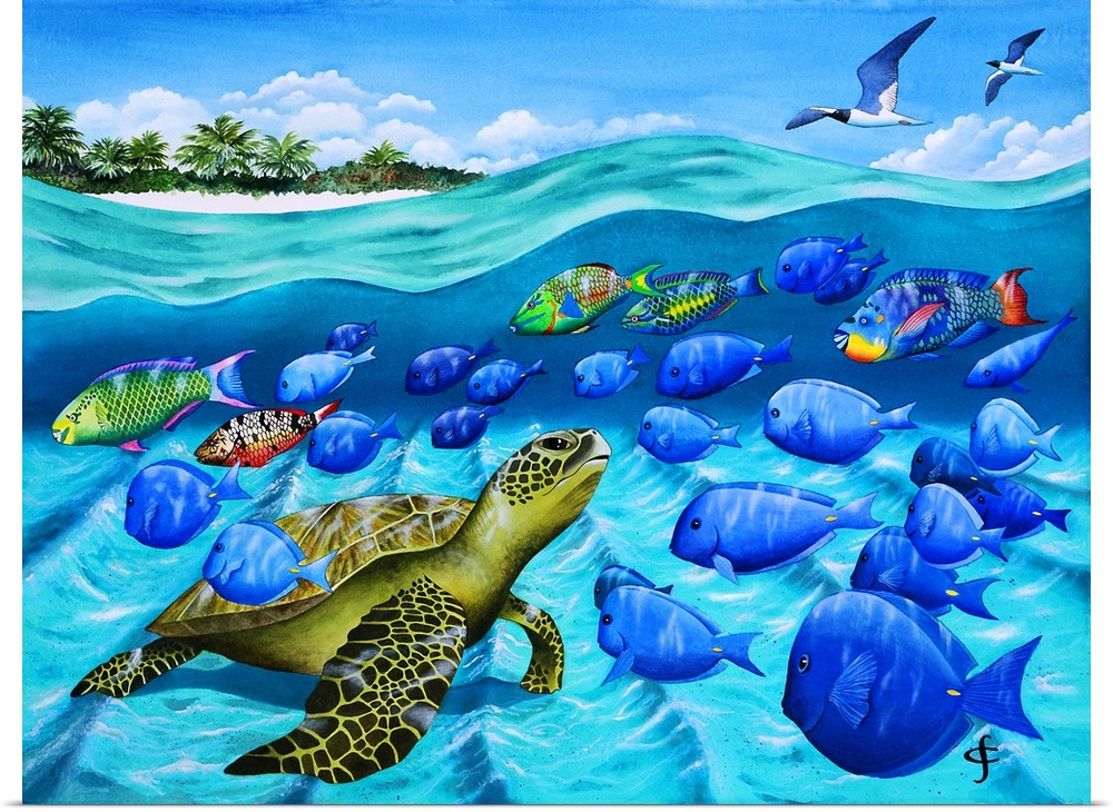 Art Blue Wall Art Contemporary Art Wildlife Painting Carolyn Steele Watercolor Wildlife Marine Life Fish Turtle