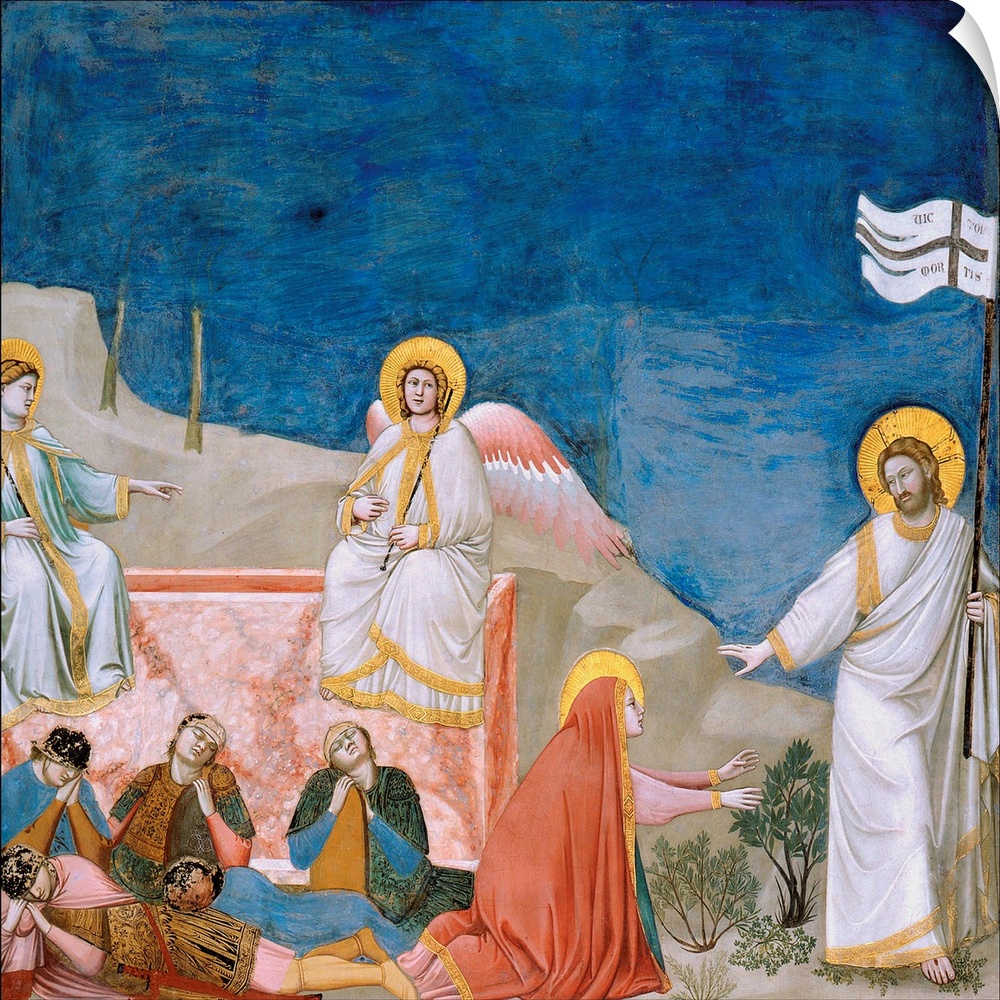 <p>Stories of the Passion of Christ The Resurrection, by Giotto, 1304 about, 14th Century, fresco, cm 200 x 185 - Italy, Veneto, Padua, Scrovegni Chapel. All. Blue Christ Resurrection sepulcher Mary angels guardsmen watchmen. (69438) Everett Collection\Monda</p>