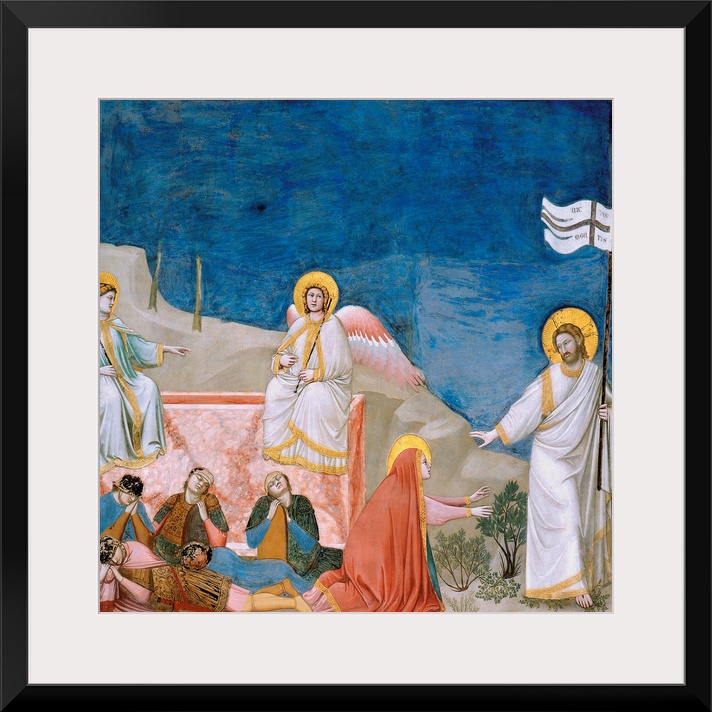 <p>Stories of the Passion of Christ The Resurrection, by Giotto, 1304 about, 14th Century, fresco, cm 200 x 185 - Italy, Veneto, Padua, Scrovegni Chapel. All. Blue Christ Resurrection sepulcher Mary angels guardsmen watchmen. (69438) Everett Collection\Monda</p>