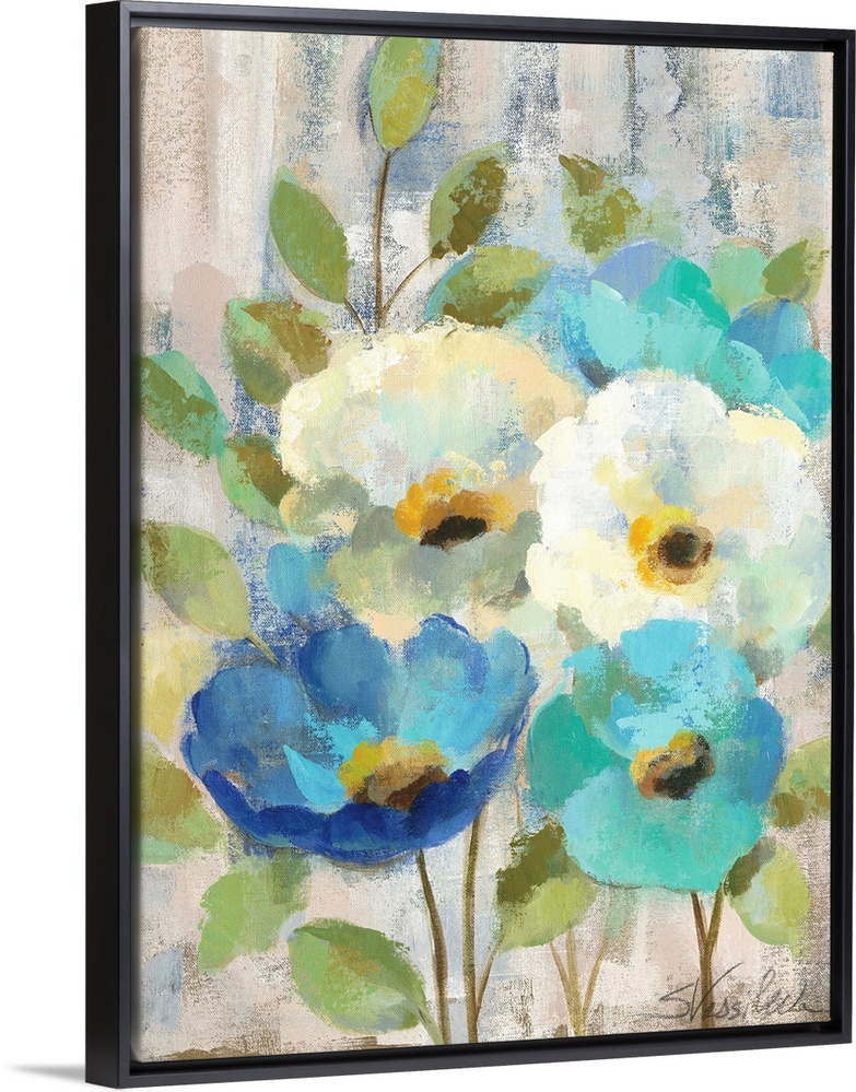Art Transitional Blue Wall Art Decorative Art Florals Painting Silvia Vassileva