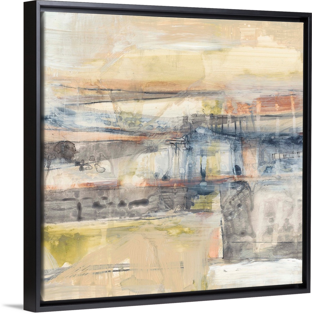 <p>Abstract artwork in pale earthtones with dripping paint.</p>