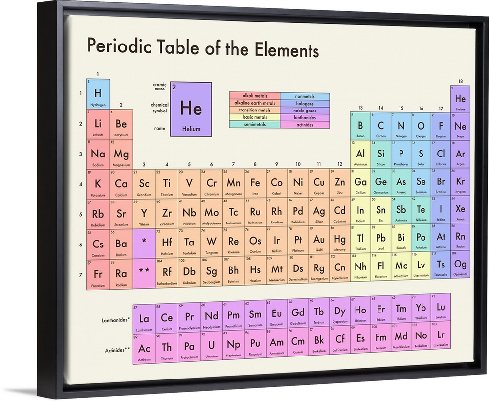 <p>Pastel colored Periodic Table of the Elements, on a light background with modern sans-serif text.</p>