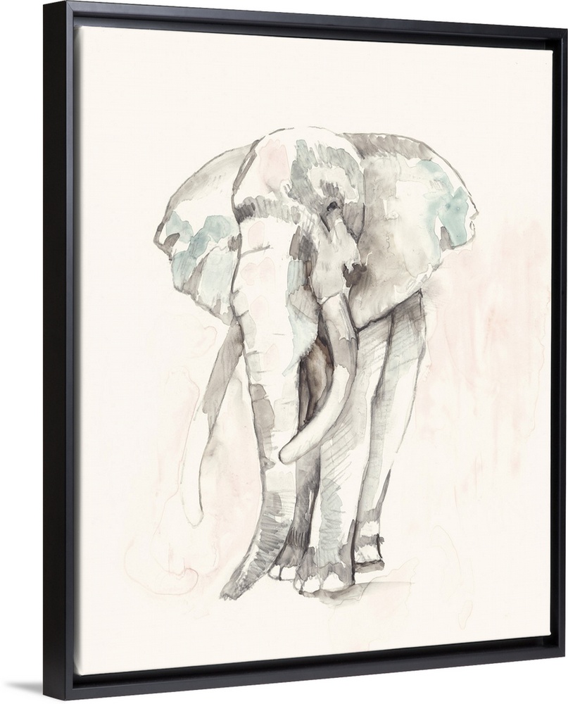 <p>Contemporary abstract painting of an elephant in soft pastel hues.</p>