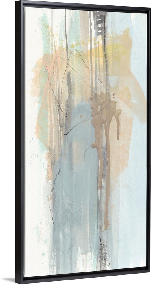 <p>Strong brushstrokes and paint splatters in pastel hues make up this contemporary abstract painting.</p>