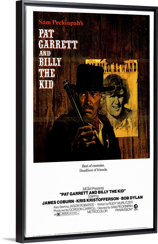 <p>Coburn is Garrett, one-time partner of Billy the Kid (Kristofferson), turned sheriff. He tracks down and eventually kills the outlaw. The uncut director's version released on video is a vast improvement over the theatrical and TV versions. Dylan's soundtrack includes the now famous Knockin' on Heaven's Door.</p>