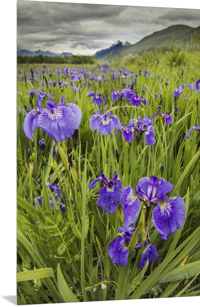 <p>Patch Of Wild Irises On The Eklutna Flats With A View Of Pioneer Peak</p>