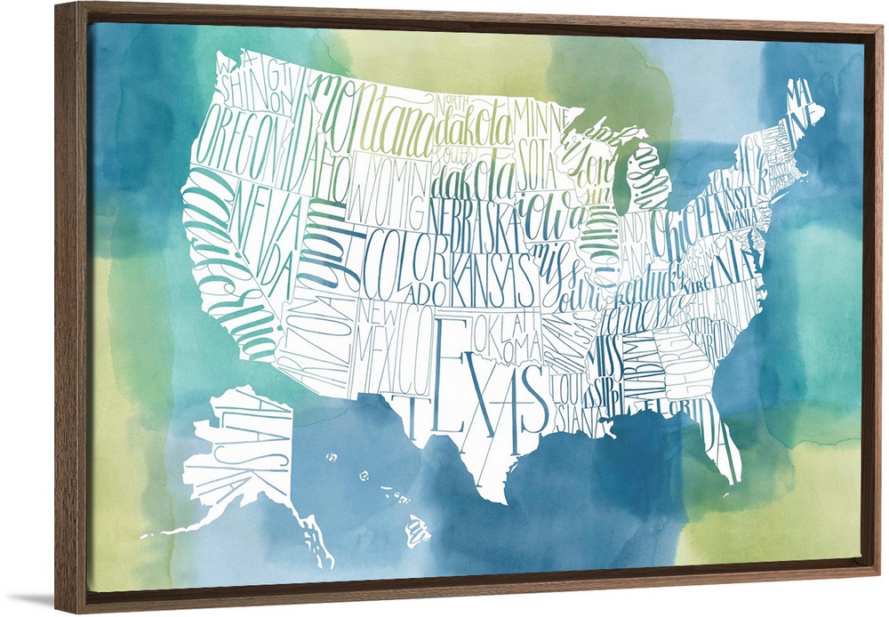 Art Office Art Blue Wall Art Decorative Art Maps Maps by Country United States Maps Painting Grace Popp Typography & Calligraphy Watercolor
