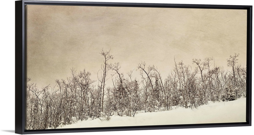 <p>An artistic photograph of a forest covered in cold winter snow.</p>