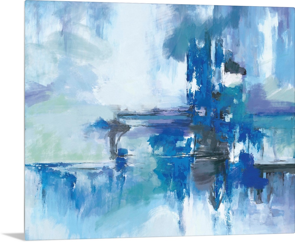 <p>A contemporary abstract painting using multiple blue tones in a horizontal movement.</p>