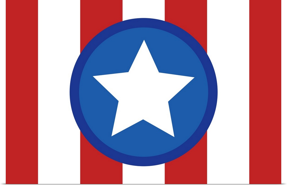<p>Graphic design with a white star inside of a blue circle, all on top of a red and white striped background.</p>