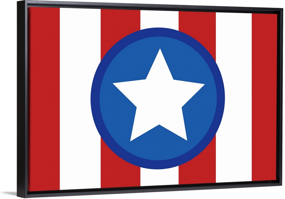 <p>Graphic design with a white star inside of a blue circle, all on top of a red and white striped background.</p>