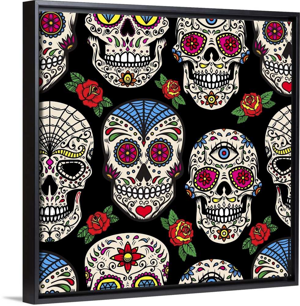 <p>Pattern With Mexican Sugar Skulls And Roses</p>