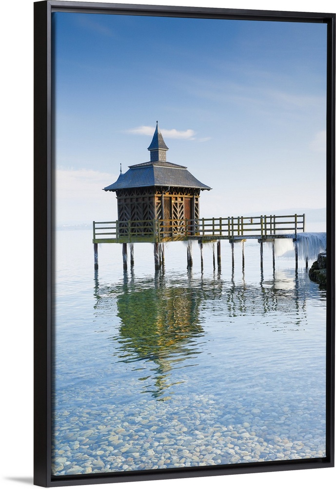 <p>Pavillon des bains at Lac de Neuchatel in winter, Neuenburg, Switzerland, Europe</p>