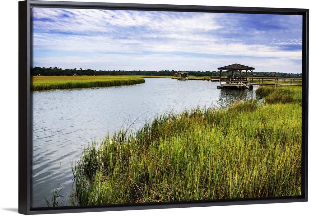 <p>A gazebo overlooking the water in a marsh. Pawleys Island, South Carolina</p>