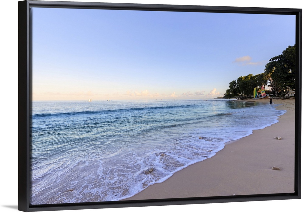 <p>Paynes Bay, at dawn, turquoise sea, sail boats, fine pink sand beach, beautiful West Coast, Barbados, Windward Islands, West Indies, Caribbean, Central America</p>