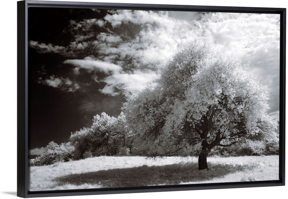 <p>An infrared photograph of a beautiful landscape with large clouds.</p>