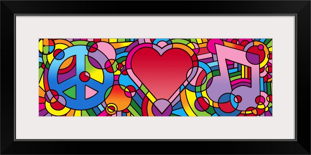 Art Contemporary Art Graphic Art Howie Green Love Multicolor Wall Art Music, Movies and TV Music Peace Signs