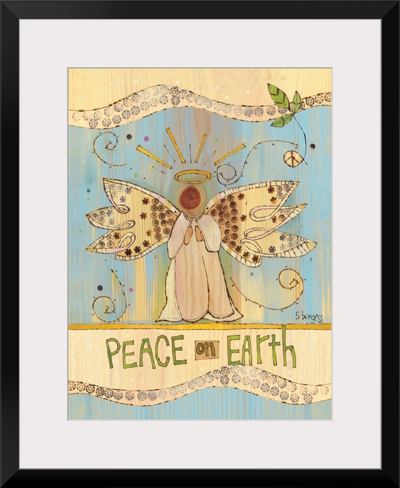 <p>Angel with cream and blue background and saying.</p>