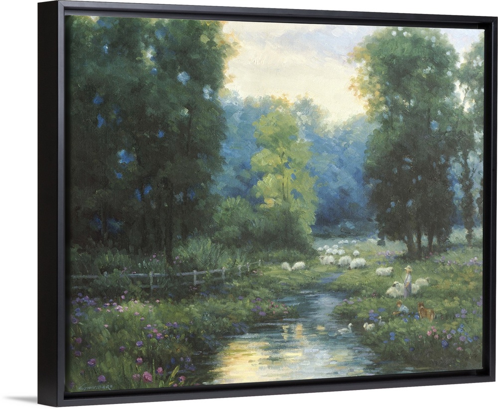 <p>Contemporary painting of an idyllic countryside scene.</p>
