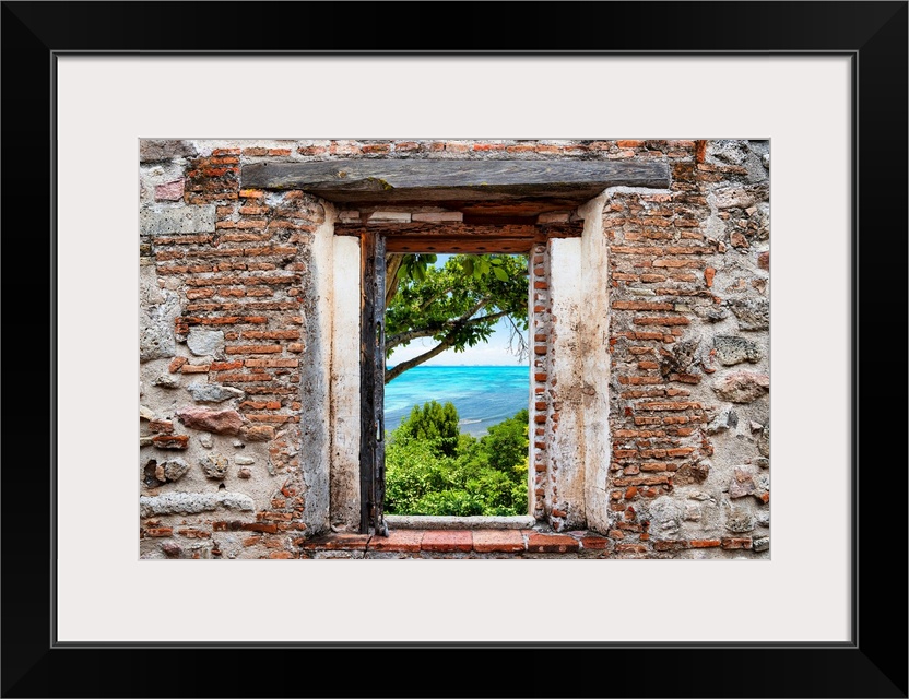 <p>View of Isla Mujeres, Mexico, framed through a stony, brick window. From the Viva Mexico Window View.</p>