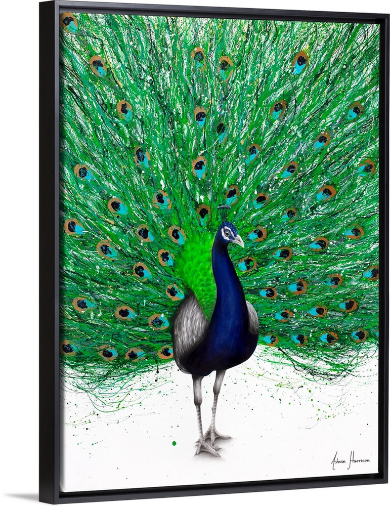 Art Decorative Art Green Wall Art Ashvin Harrison Mixed Media Art Wildlife Bird Peacock