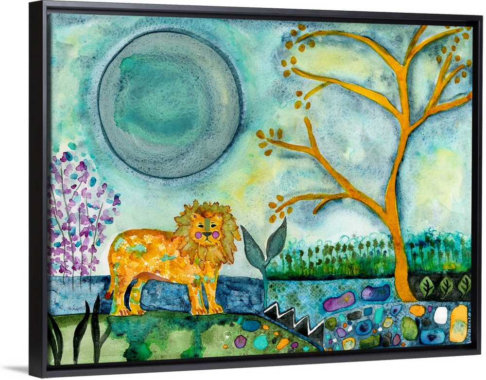 Art Wyanne Art Contemporary Art Landscapes River, Creek and Stream Trees Painting Watercolor Wildlife Lion