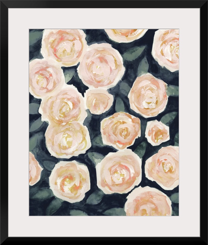 Art Transitional Pink and Green Contemporary Art Plants and Flowers Florals Rose Painting Victoria Borges