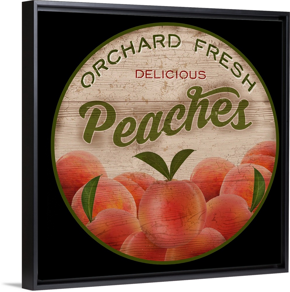 <p>Round wooden sign for fresh peaches.</p>