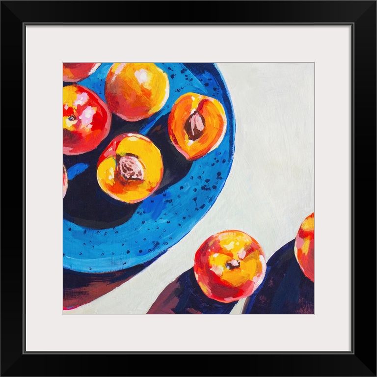 Art Kitchen Wall Art Blue Wall Art Contemporary Art Food and Drink Food Fruit Peach Painting Still Life