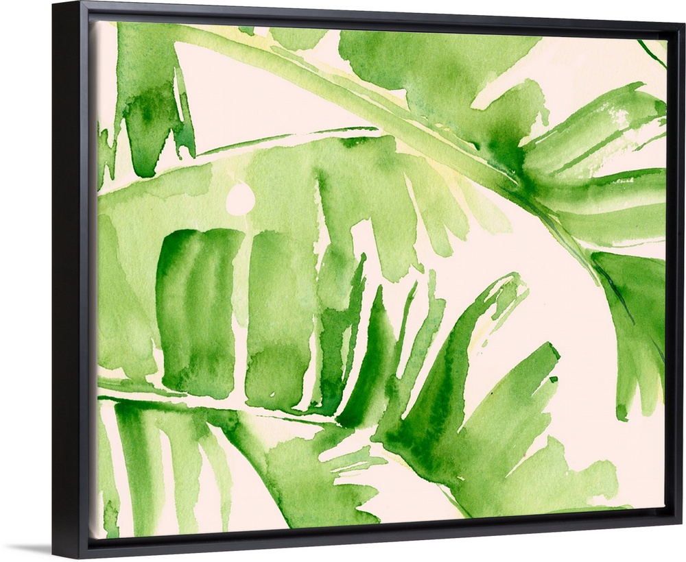 <p>Watercolor palm fronds on a peachy pink background.</p>