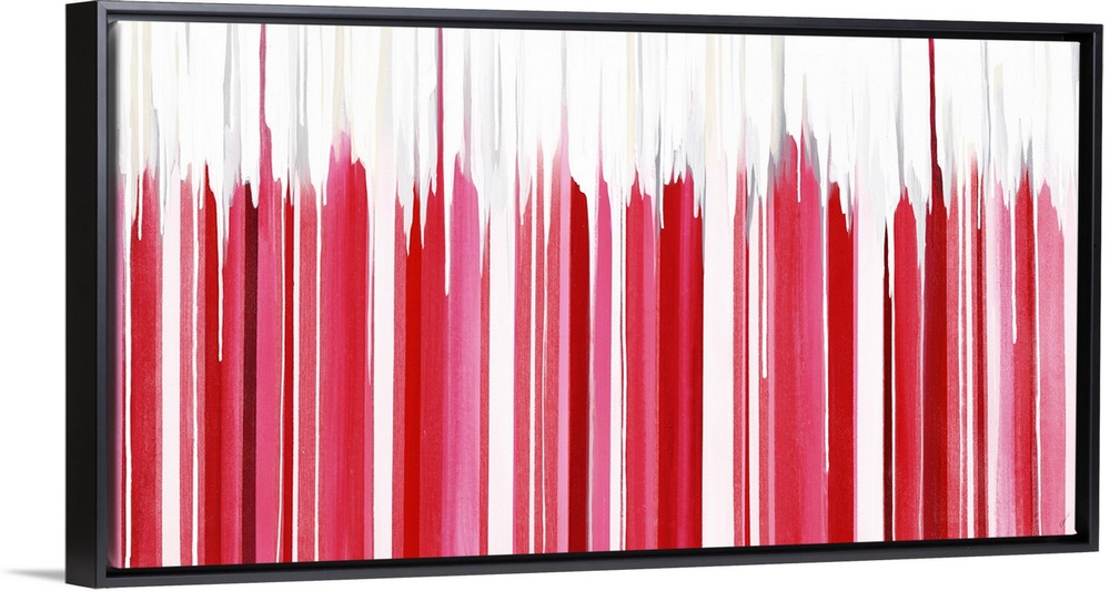 <p>Vertical lines in shades of pink placed in a horizontal row with neutral hues bleeding from the tips to the top of the canvas.</p>