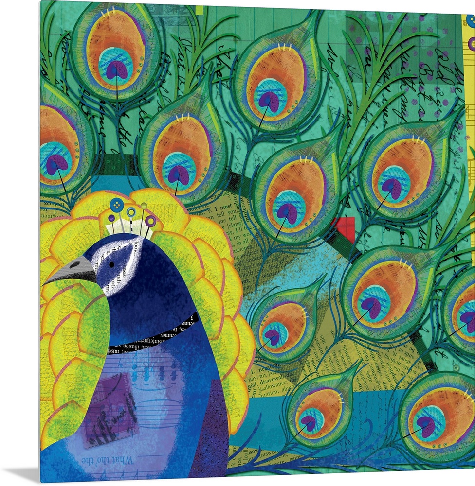 Art Holli Conger Decorative Art Green Wall Art Mixed Media Art Wildlife Bird Peacock