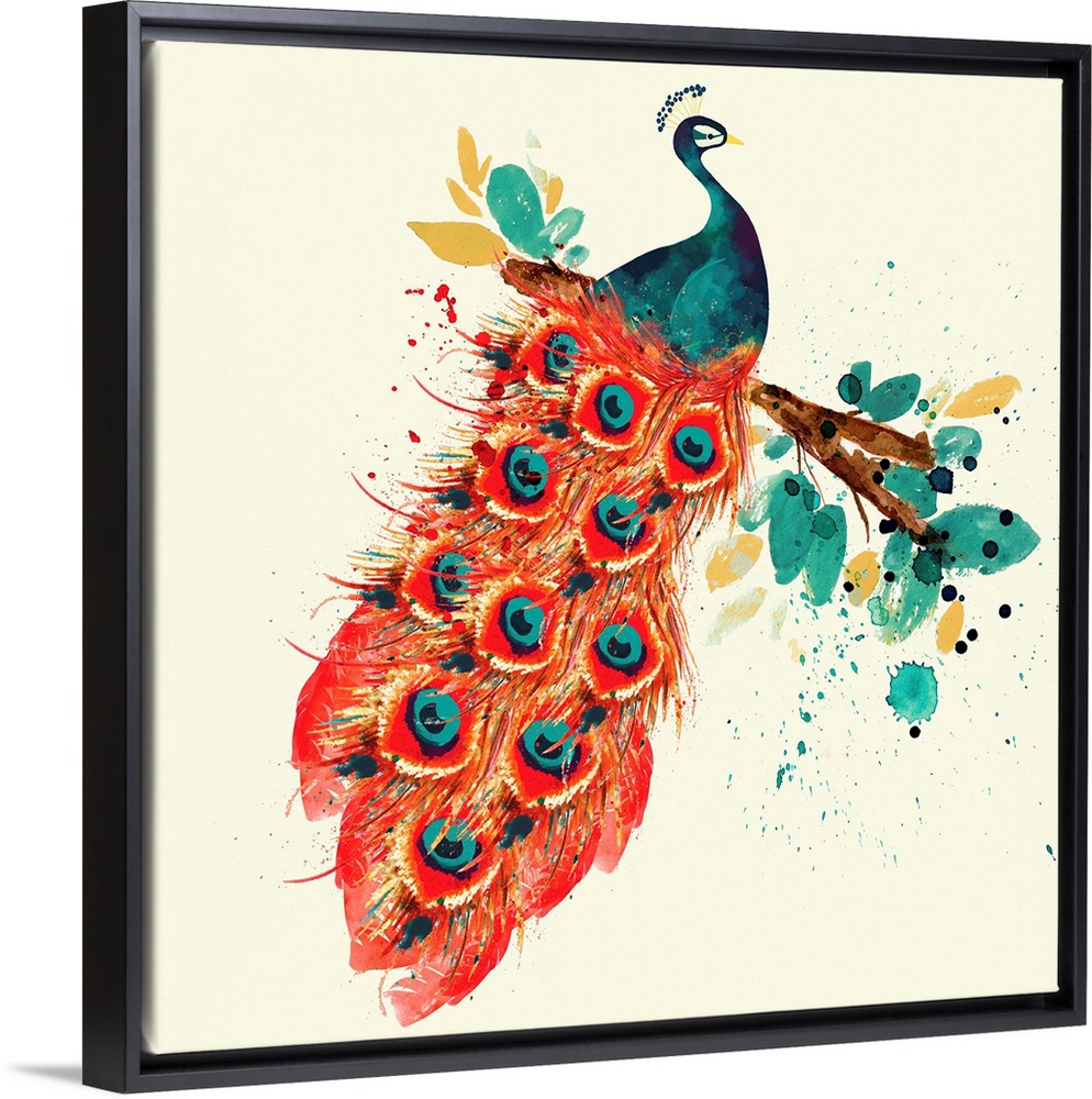 Art Sara Berrenson Decorative Art Orange Wall Art Painting Watercolor Wildlife Bird Peacock