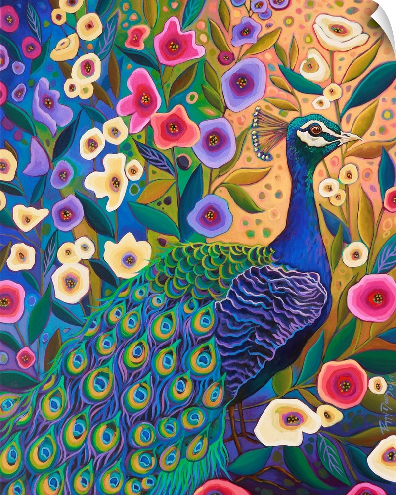 Art Blue Wall Art Peggy Davis Decorative Art Florals Painting Wildlife Bird Peacock