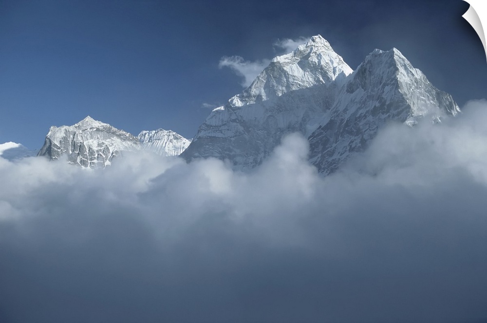 <p>Dramatic peaks of Ama Dablam sunlit above the clouds in the Himalayas of Nepal, Koshi Province, Nepal</p>