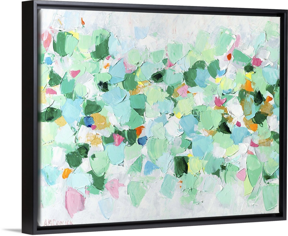 <p>Abstract artwork in minty green shades with pops of pink.</p>