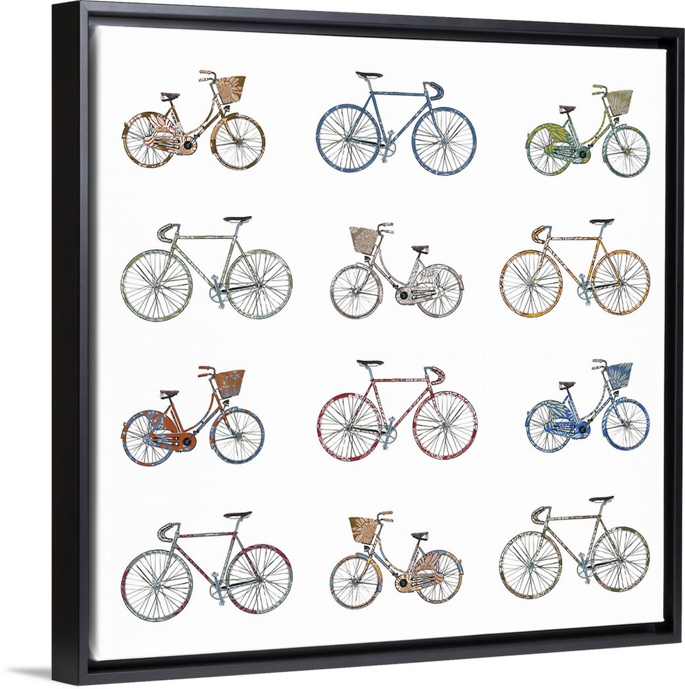 <p>Contemporary artwork of a pattern of bicycles against a white background.</p>