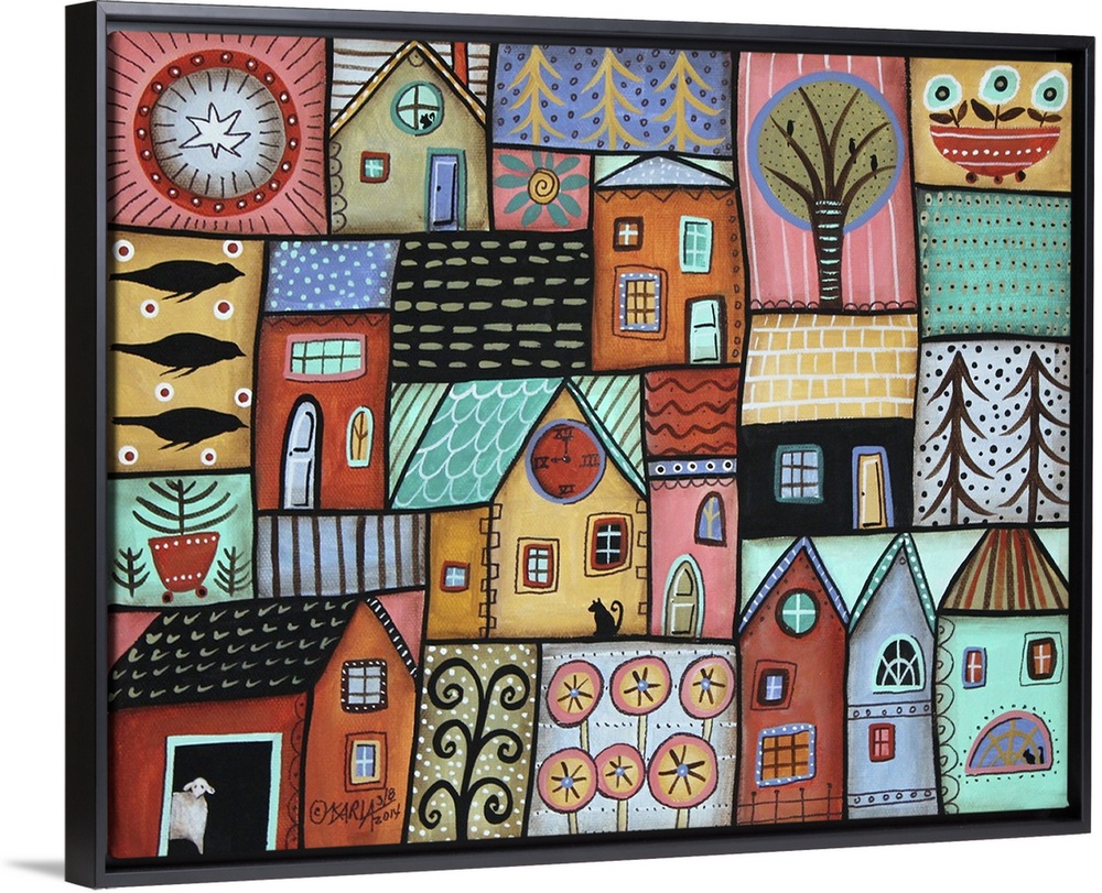 <p>Contemporary painting of a village full of colorful houses.</p>