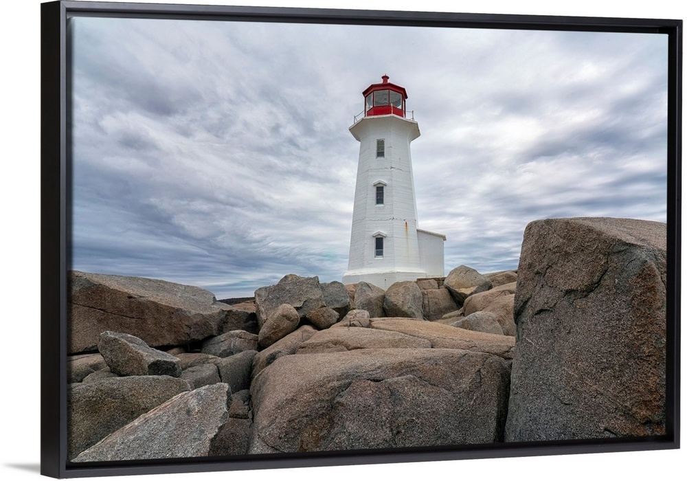 <p>Peggy's Cove lighthouse on a moody day, Nova Scotia.</p>