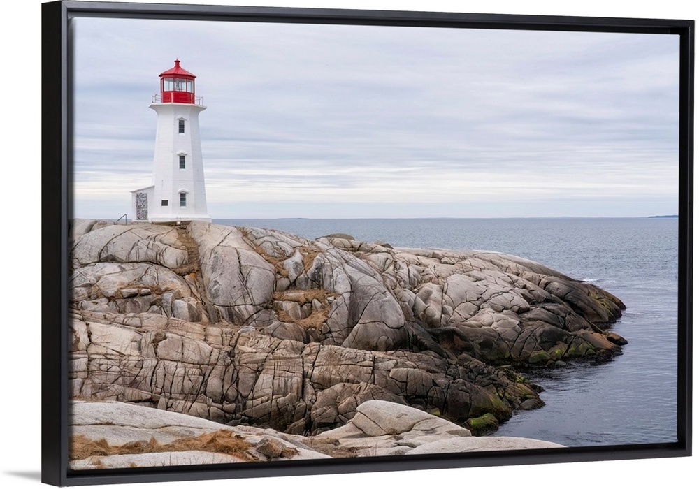 <p>Peggy's Cove lighthouse on a moody day, Nova Scotia.</p>
