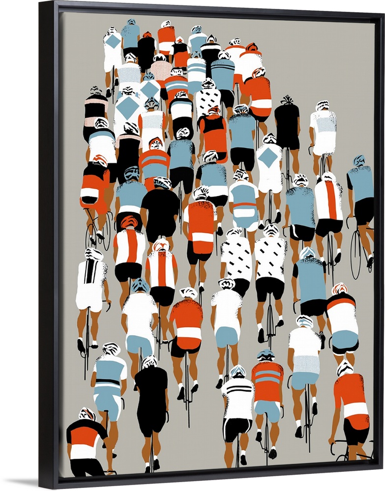<p>Contemporary painting of cyclists riding together in a large group.</p>