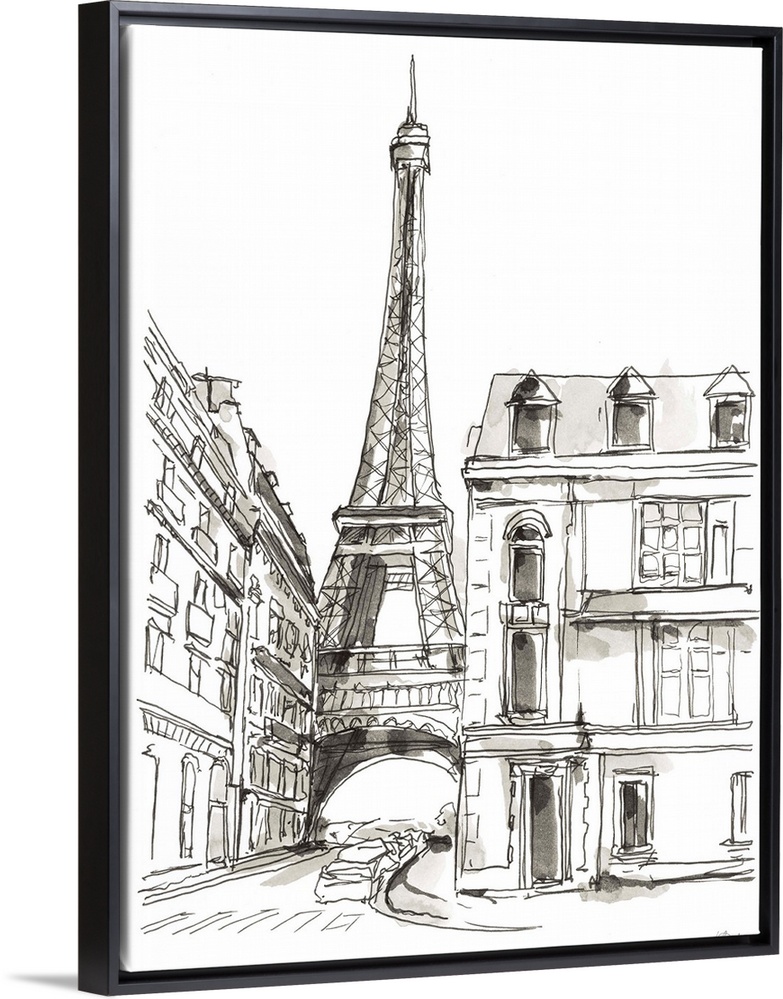 Art Transitional Living Room Art Cityscapes Decorative Art Drawing Ethan Harper Illustrations France Paris Eiffel Tower